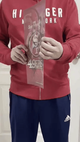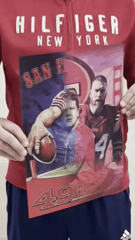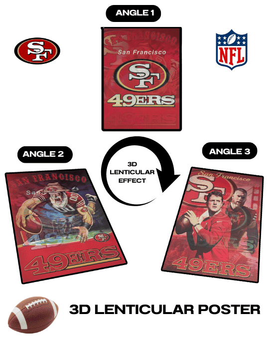 It’s a high-quality 3D lenticular poster that shifts as you move – super satisfying to look at and perfect for 49ers fans